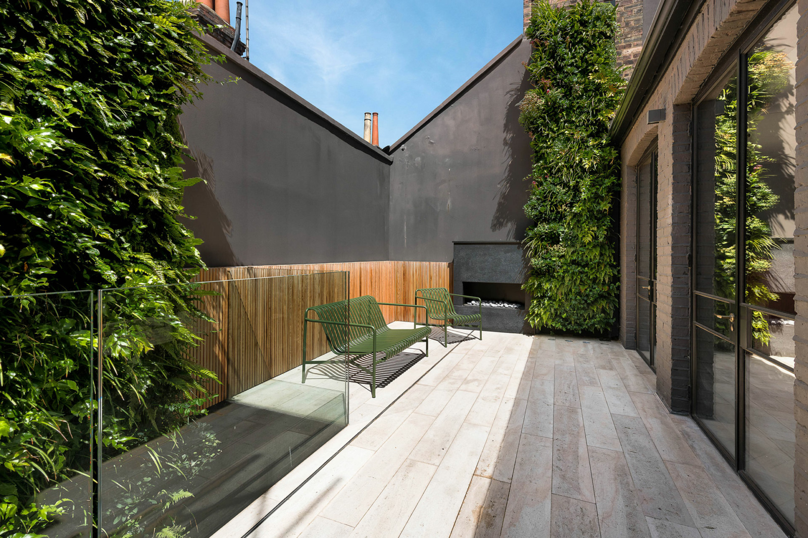 Set over 3 floors, the property offers a modern open-plan living space with a large reception and kitchen/dining room on the first floor that lead out to the private roof terrace via beautiful crittall doors. The stunning master suite, with vaulted ceilings, is found on the second floor, with bedrooms two and three situated on the ground floor, both with ensuite shower rooms and access to a patio.